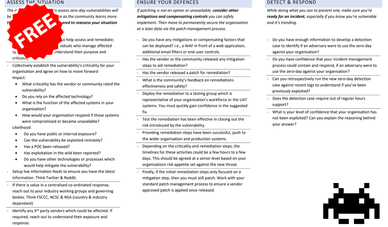 - Do you have confidence that your incident management process could contain and respond if an adversary were to use the zero-day against your organisation?